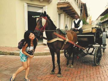 邓深在哥伦比亚塔赫纳老城。