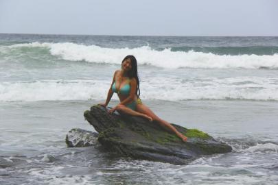 邓深在特立尼达与多巴哥海边。
