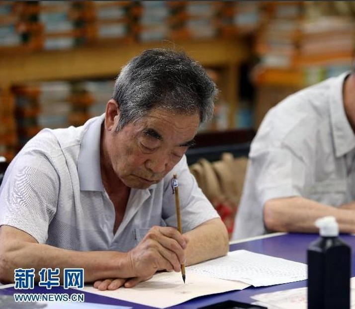 这几天西安的天气闷热,但在陕西师范大学启夏苑里,十几位老教授手持毛笔正聚精会神地填写着2016级新生录取通知书。他们中,年龄最大的已经83岁高龄。在他们笔下,一个个新生的名字、录取专业和报到时间都工工整整地落在纸上,一笔一划都饱含着老教授们对新生的祝福。