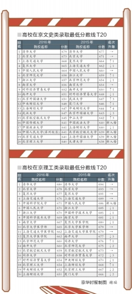 从2015年和2016年录取线可以看出,清华已经连续两年超越北大领跑各高校。比如去年,清华大学在京文科录取最低分为677分,比北大高出6分;理科录取最低分为694分,比北大高1分。