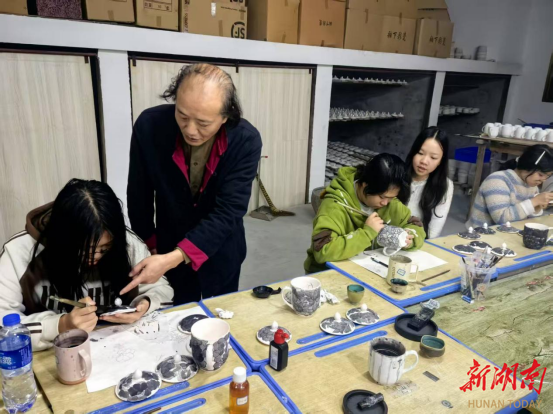 华声在线11月6日讯(通讯员 陈曙霞)“湘南船山技工学校的孩子对陶瓷制作悟性高,有潜力。”11月5日,在衡阳县界牌镇凌文武瓷艺传习所,15岁的曾思叶握着汾水笔,神情专注在瓷坯上彩绘。“思叶同学来瓷艺传习所学习不到一个月,现在能独立拉坯、彩绘。” 省陶瓷工艺大师、凌文武瓷艺传习所负责人凌文武点头称赞。时下,像曾思叶一样,该县已有6名00后拜师陶瓷大师。
