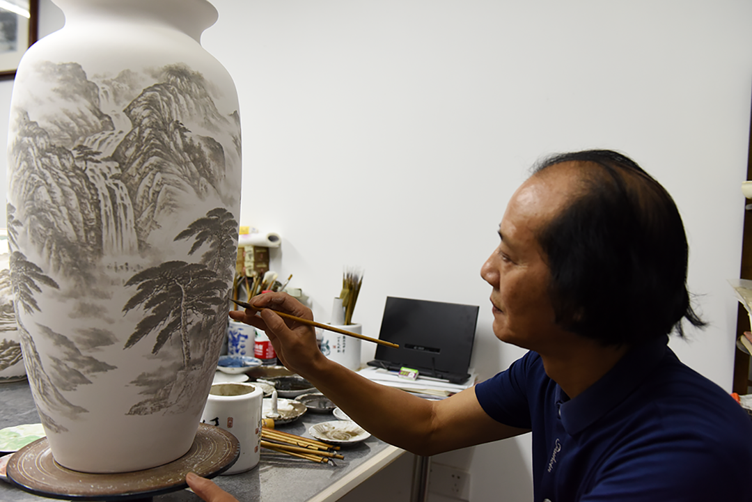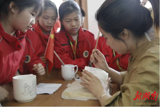 湘南船山技工学校学生学习釉下五彩瓷制作工艺