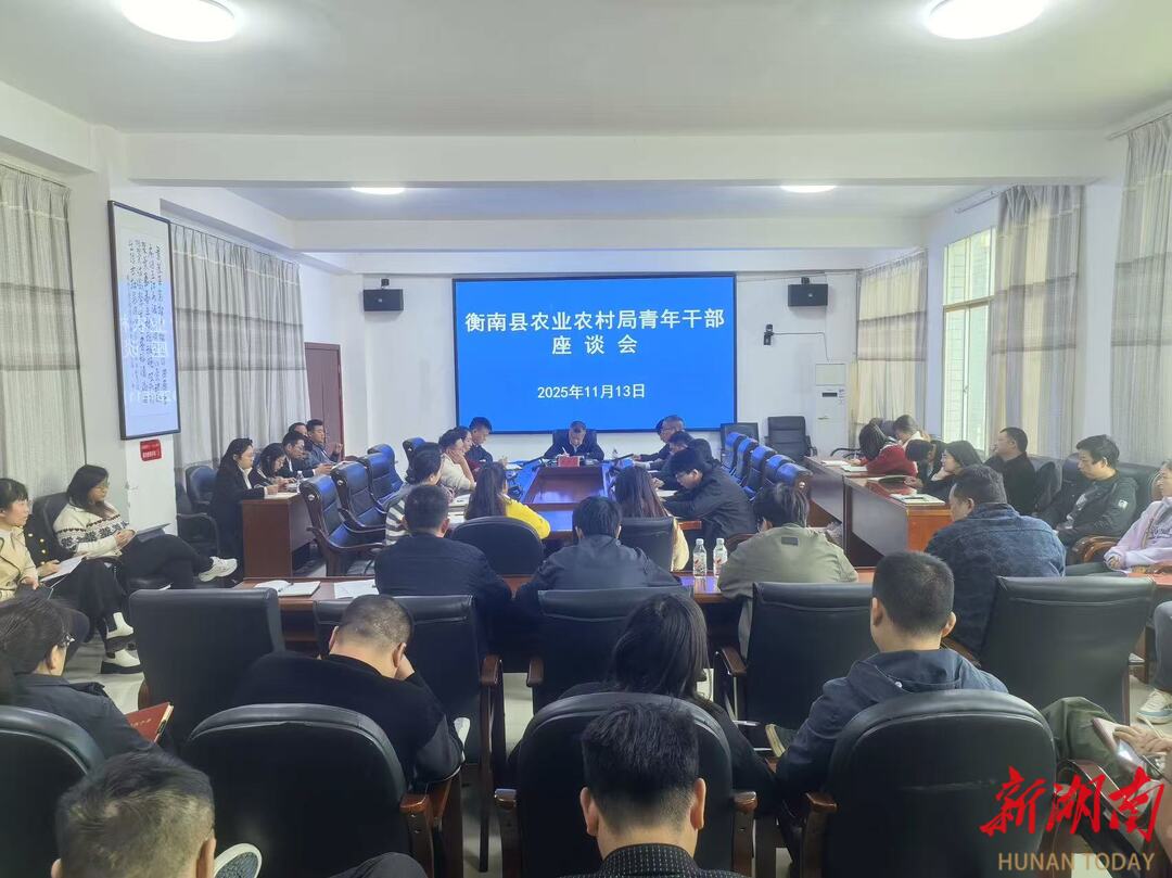 华声在线11月14日讯 (通讯员 邹高峰 王小娜) “我们年轻干部的成长,从不是‘坐享其成’的坦途,而是在‘摸爬滚打’中锤炼本领。”11月13日,在衡南县农业农村局青年干部座谈会上,青年干部代表刘柯宏的发言引发了在场青年的强烈共鸣。为倾听青年心声,激发干事热情,该局组织召开了此次座谈会,局负责人、驻局纪检组组长、相关股室负责人及53名青年干部代表齐聚一堂,共话成长、共谋发展。