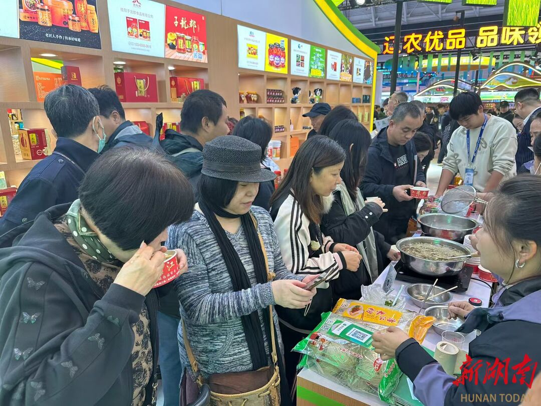 “今年11月中旬农博会期间,渣江米粉刚上架就被市民抢购,3天时间销售米粉5000多斤。” 渣江米粉员工在展览现场支起的汤锅冒着热气,市民试吃碗刚递出去就被抢空,不少市民一次拎走10斤、20斤米粉,直言“要囤够一冬口粮”。
