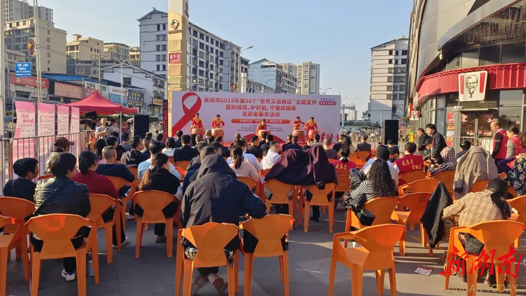 湖南日报·新湖南客户端12月2日讯(通讯员 刘源 罗显斌)今年12月1日是第38个“世界艾滋病日”。当天下午,耒阳市“世界艾滋病日”系列宣传活动启动仪式暨防结核,护肝脏,守慢病健康志愿者服务活动在合兴城市广场举行。活动现场通过科普宣传、趣味互动、文艺演出等多元形式,向市民普及防艾知识,倡导全社会消除歧视、共担责任。