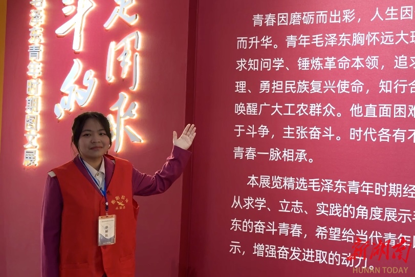 此次活动中,16名来自湖南高速铁路职业技术学院的学生代表以“红色志愿讲解员”身份正式“上岗”,全程参与《青春是怎样奋斗的——毛泽东青年时期图文展》的讲解服务。他们身着统一志愿服装,佩戴讲解员标识,用青春之声讲述伟人故事,用真挚情感传递奋斗力量,成为纪念馆中最动人的“志愿风景线”。