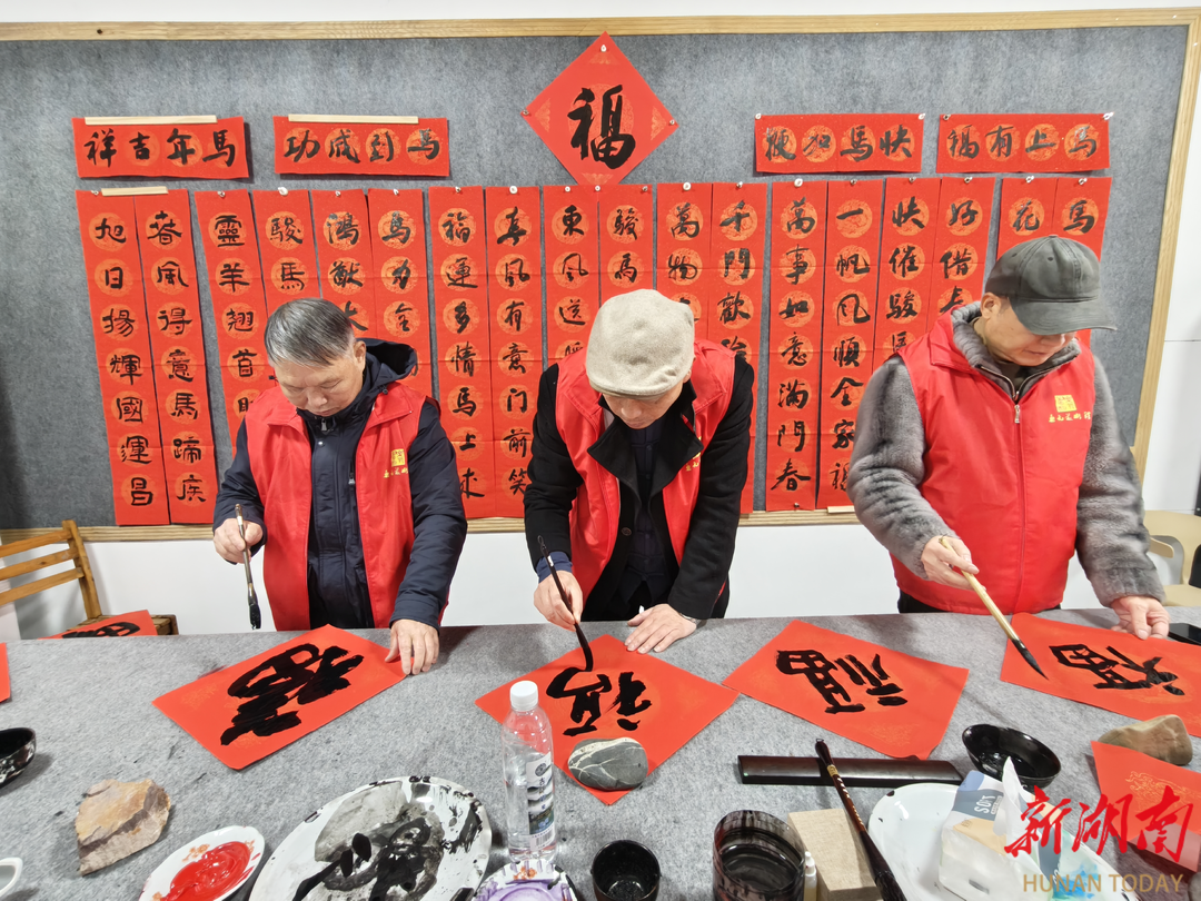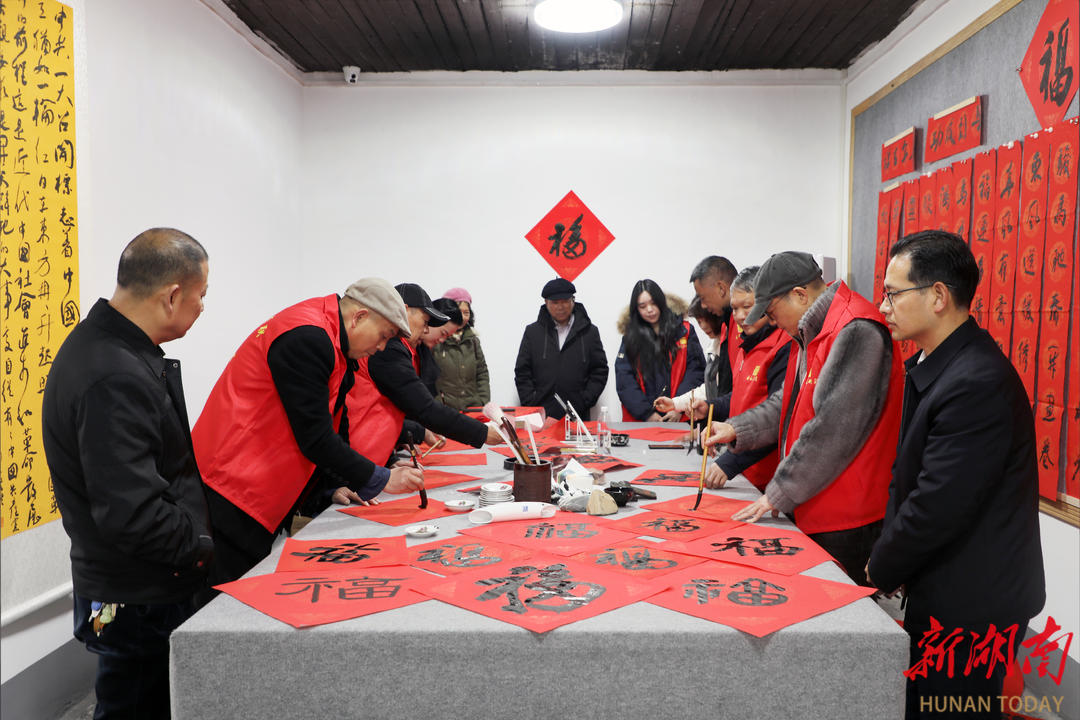 湖南日报·新湖南客户端1月21日讯(通讯员 陈爱群 张双胜 汤嘉怡)大寒已至,常宁大地寒意袭人,洋泉镇乐元村气温降至零度,乐元美术馆内却暖意融融、墨香四溢。近日,由常宁市文联牵头组织的2026新时代新春联“百千万”艺术工程惠民活动启幕,书法艺术家们挥毫泼墨送春联,与村民共话新春,让传统文化的暖意驱散了冬日的严寒。