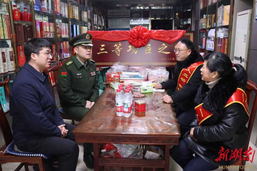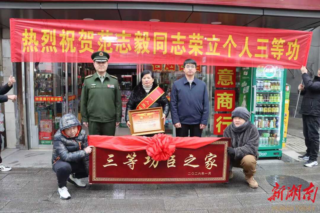 湖南日报·新湖南客户端1月26日讯(记者 张子欣 通讯员 李霞 谭伊玲)一人立功,全家光荣。近日,衡阳市石鼓区人武部携手区退役军人事务局组成送喜报小组,先后走进黄沙湾街道、人民街道,为荣立三等功的现役军人张熙鹏、范志毅家属送上立功喜报、荣誉牌匾与慰问金,将部队的褒奖与地方的关怀送到军属心坎上。
