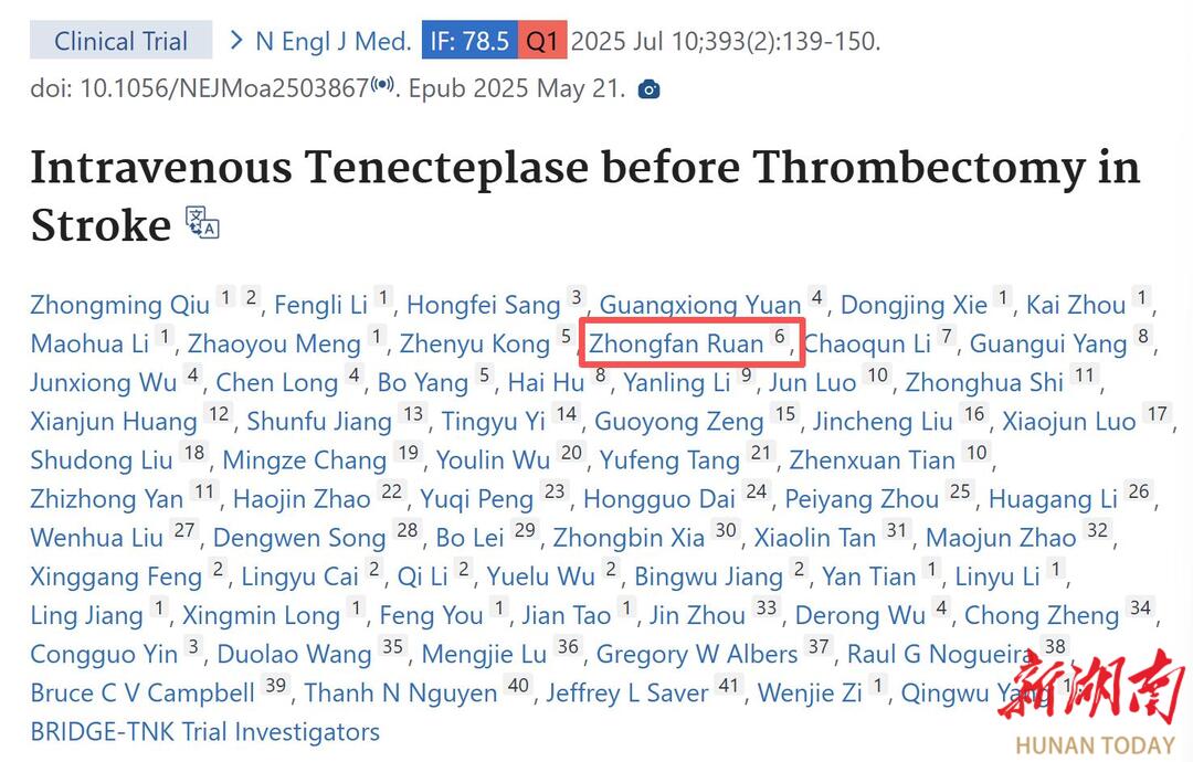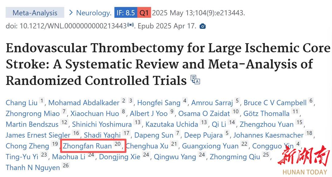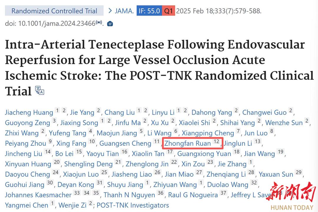 湖南日报·新湖南客户端1月30日讯(通讯员 肖子建)“能在NEJM、JAMA、Neurology同一年留下湖南名字,这是学科的高光时刻,更是衡阳百姓的福音。”近日,南华大学附属第一医院神经内科临床研究再传捷报:科室作为参与单位,连续在三大国际顶刊发布脑血管病最新证据,标志着该院大血管闭塞性卒中(LVO)临床研究跻身国内先进行列。