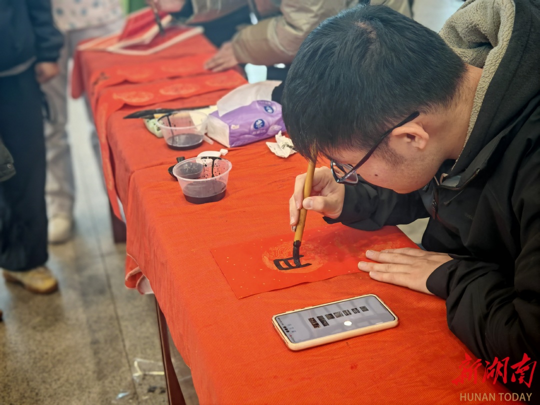 来自长沙、带着孩子去永州探亲的张先生,在拿到现场书写的春联后笑着说:“没想到赶车还能感受到这么浓的年味!孩子第一次看糖画制作,我也好多年没见过现场写春联了,车站把温暖和祝福都‘搬’到了我们身边。”