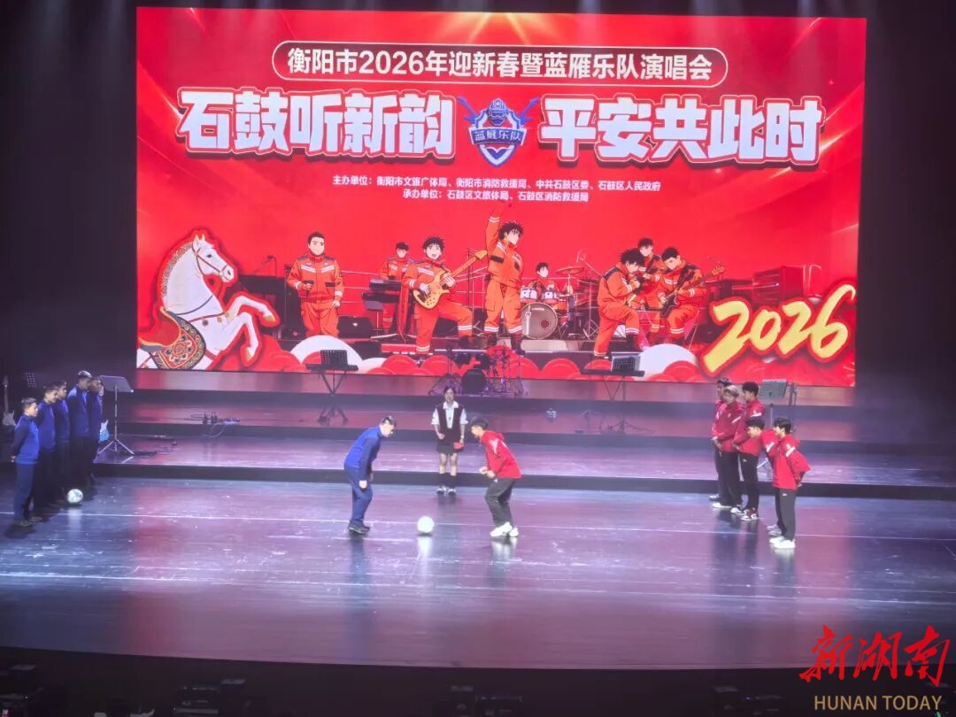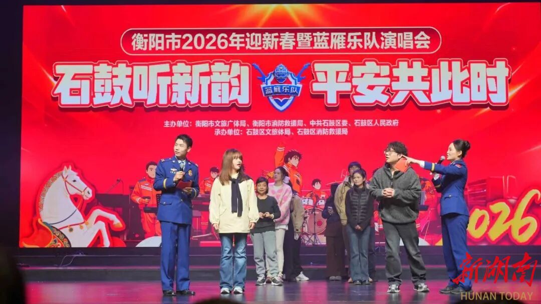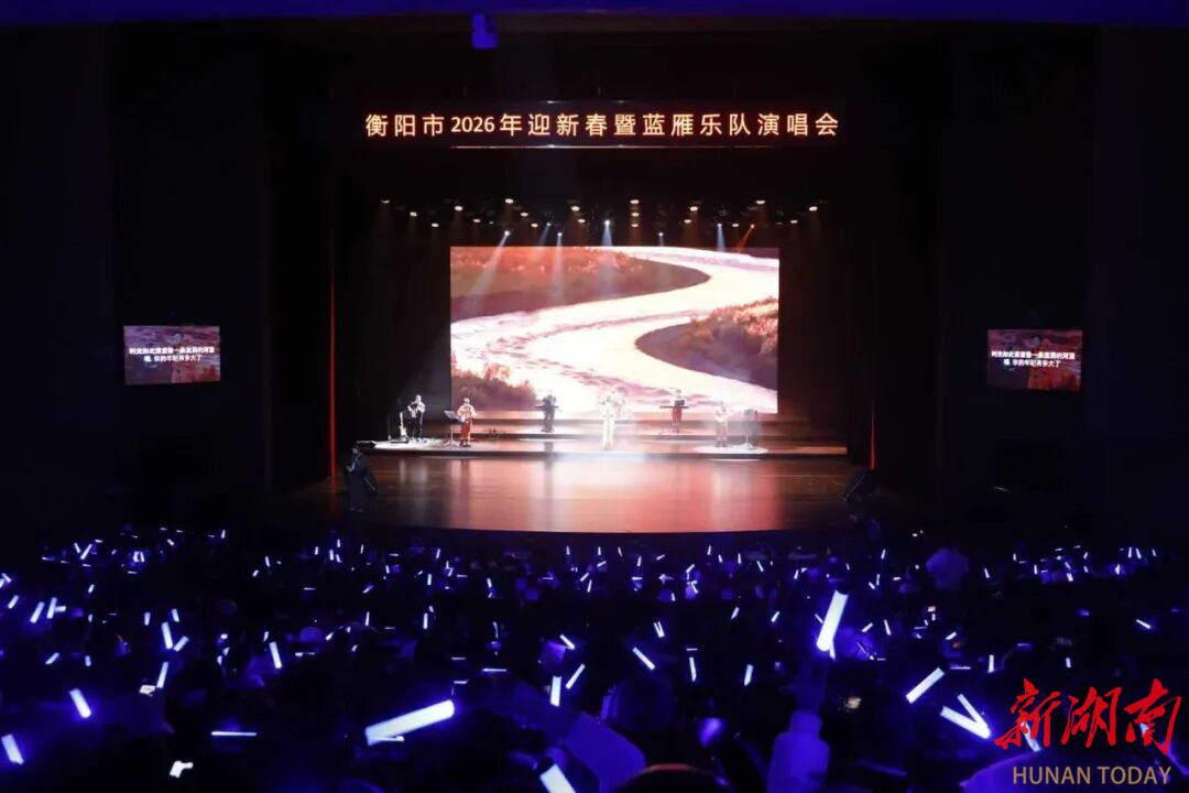 湖南日报·新湖南客户端2月5日讯(记者 张子欣 通讯员 唐敏 罗亮华)2月4日晚,“石鼓听新韵 平安共此时”衡阳市2026年迎新春暨蓝雁乐队演唱会在保利大剧院激情开唱。