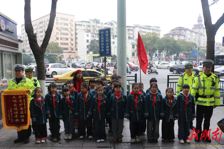 湖南日报·新湖南客户端2月6日讯(通讯员 唐衡华)为践行社会主义核心价值观,帮助孩子们“扣好人生第一粒扣子”,2月5日,衡阳市石鼓区人民路小学372中队的22名少先队员,在中队辅导员和家长志愿者的陪伴下,走进石鼓交警大队人大岗亭,开展了一场意义非凡的“冬日暖阳 致敬守护者”寒假社会实践活动,用真挚行动向坚守一线的交警们送上敬意与温暖。