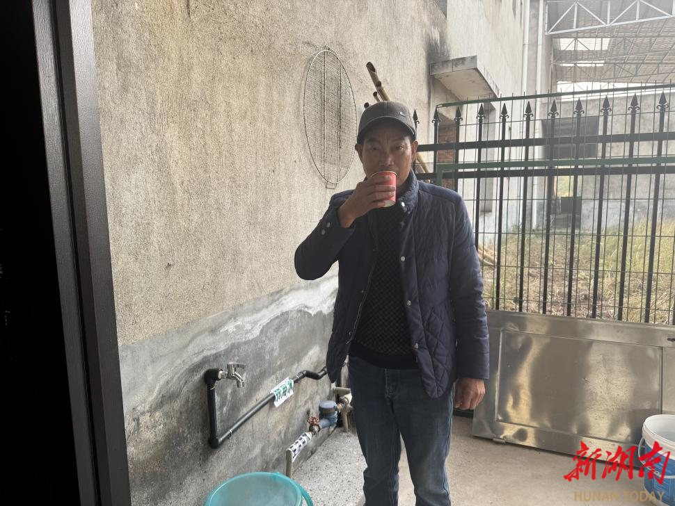 金源街道三里社区居民唐正国打开水龙头直接装水喝。(邓小山 摄)