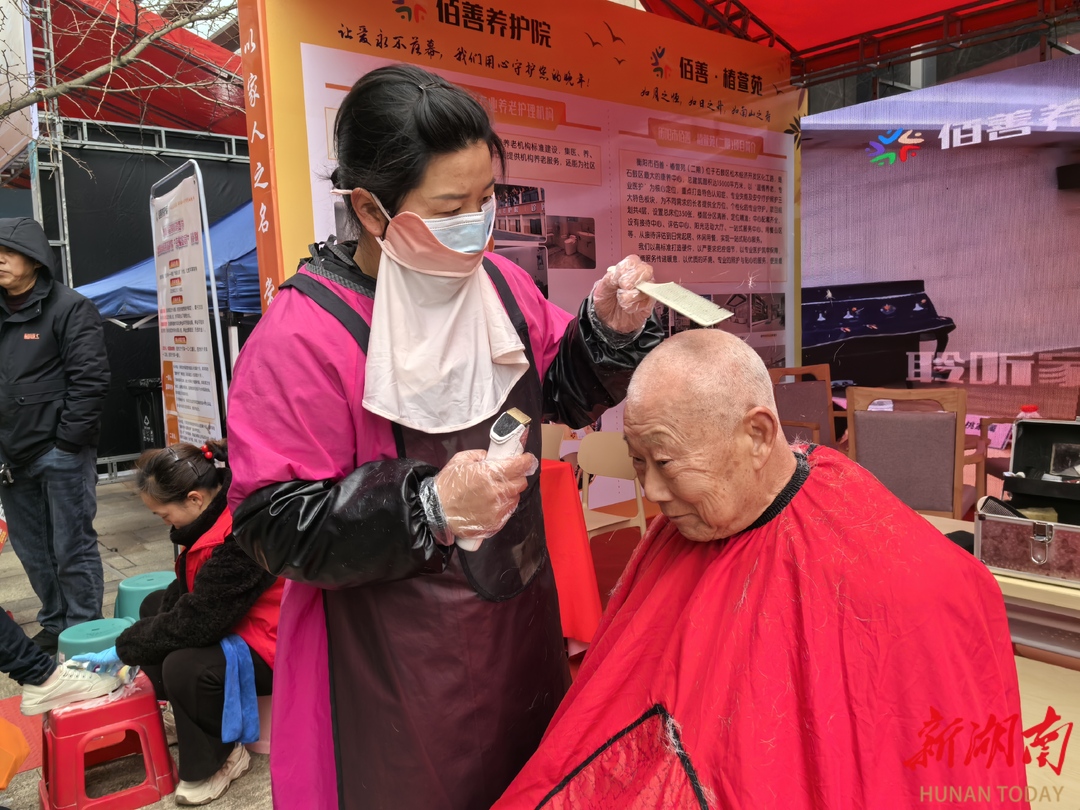当天活动现场设立的康养体验区,成为长者们的“移动健康驿站”。老中医坐诊搭脉、辨证解惑,免费提供中药茶饮试饮,以传统养生智慧为长者健康保驾护航;志愿者主动上前,为逛展的长者测量血压、讲解慢病管理技巧,耐心解答高血压、糖尿病等常见老年病的防治疑问,细致叮嘱饮食细节;免费理发服务更是暖意融融,理发师娴熟地修剪头发,一边操作一边与长者唠着家常,欢声笑语中,不仅让长者们焕然一新,更让他们感受到了来自社会的温情关怀。
