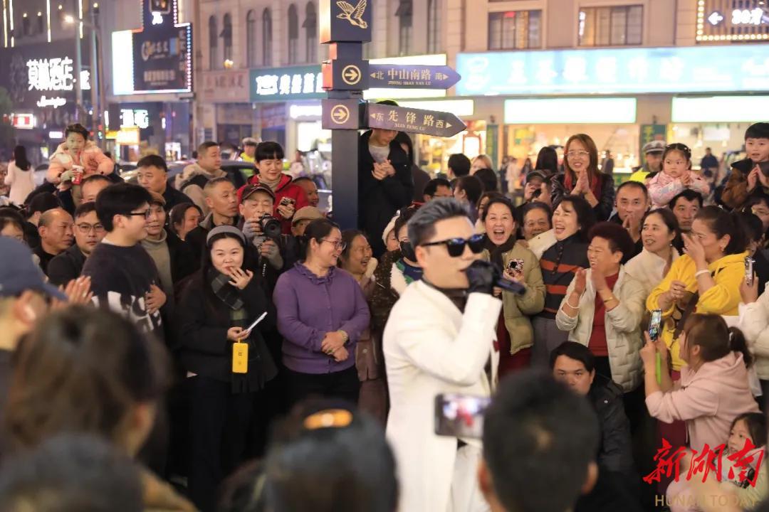 湖南日报·新湖南客户端2月16日讯(通讯员 谭予卉)2月14日晚,一边是中山南路阳台音乐会的情歌专场,另一边是民俗文化广场的戏曲展演。两场大戏同步上演,一街之隔,浪漫与古韵交融,将雁城的夜空点缀得格外璀璨,吸引了众多市民游客沉醉其中,热情互动。