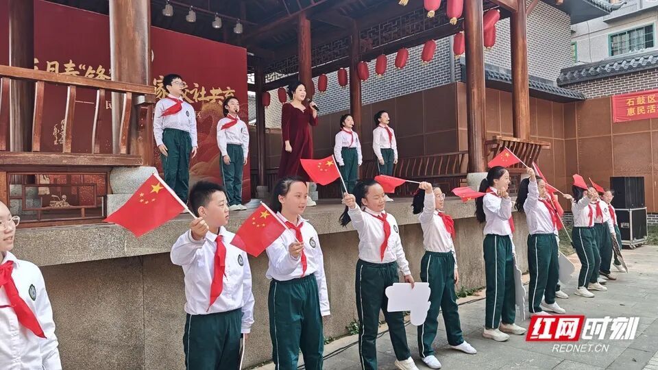 启动仪式上,少先队员以饱满的热情宣讲《续写新时代“雷锋故事”》,字字铿锵、句句真诚,生动诠释了新时代少年对雷锋精神的理解与传承,赢得现场阵阵掌声。紧接着,熟悉的旋律响起,师生携手同唱《学习雷锋好榜样》,激昂的歌声回荡在大戏台上空,将学习雷锋的热情推向高潮。