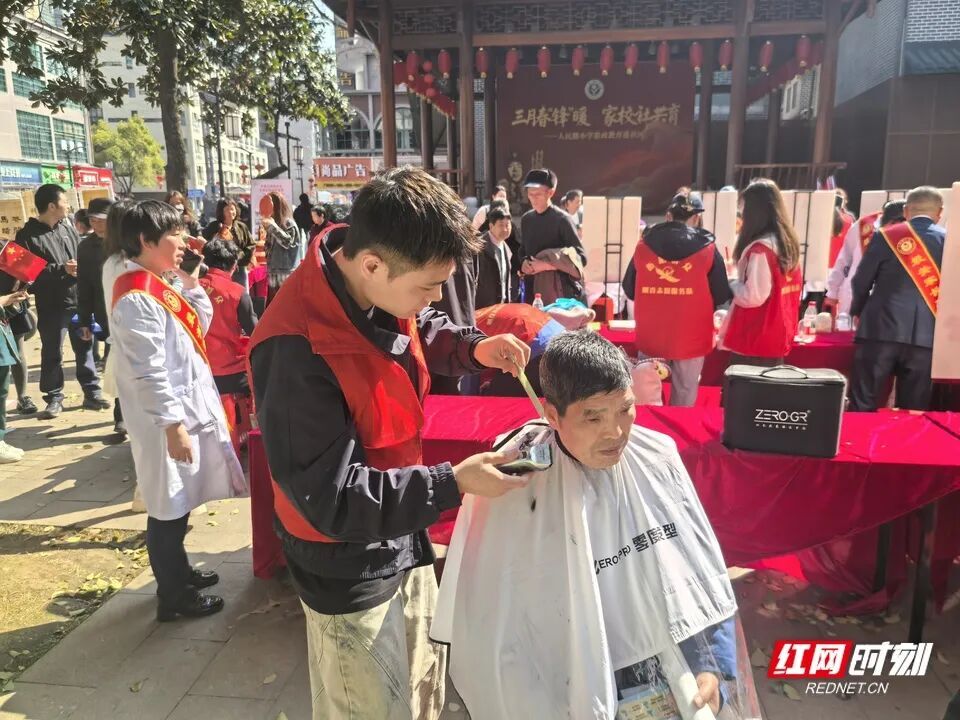 家庭教育咨询点前,家长学校志愿者耐心为社区居民解答育儿困惑,分享科学教育方法;政策宣传点上,志愿者们通过发放资料、现场讲解等方式,向居民普及垃圾分类、反诈知识,提升大家的安全防护与环保意识;健康测量点内,志愿者细致为老人测量血压、血糖,叮嘱日常健康注意事项,贴心又周到;理发、非遗传承等特色服务点前更是排起了长队,志愿者们用专业技能服务社区群众,用爱心传递温暖,每一个忙碌的身影,都成为践行雷锋精神的生动注脚。